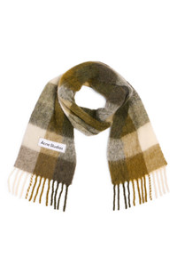 Acne Studios Vally Plaid Alpaca, Wool & Mohair Blend Scarf in Taupe/Green/Black at Nordstrom