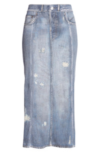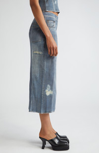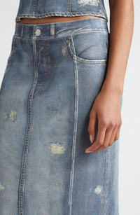 The Stockholm-based label becomes master of illusions in a mind-bending cotton midi skirt screenprinted to look like faded denim dotted with 'ripped' accents. Pull-on style 100% cotton Hand wash, line dry Made in Portugal Designer Clothing