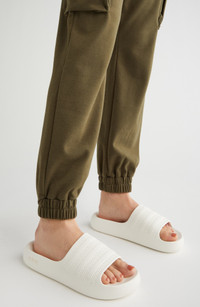 Sporty 3-Stripes pop against the geo-textured straps of this '70s-throwback slider molded for comfort with a contoured, supportive footbed. 3/4" platform (size 9) Contoured footbed Synthetic upper, lining and sole Imported
