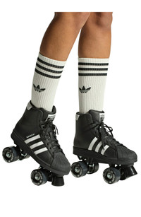Relive those sweet memories of hitting the rink in style when you wear this adult-sized roller skate featuring a rounded shell toe and serrated 3-Stripes for an authentic sporty look. The coated leather upper and interior padding provide durable comfort, while the front brake and hard rubber wheels keep you moving smoothly. Lace-up style Leather upper/textile lining/rubber sole Imported