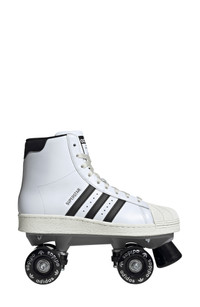 Relive those sweet memories of hitting the rink in style when you wear this adult-sized roller skate featuring a rounded shell toe and serrated 3-Stripes for an authentic sporty look. The coated leather upper and interior padding provide durable comfort, while the front brake and hard rubber wheels keep you moving smoothly. Lace-up style Leather upper/textile lining/rubber sole Imported