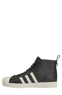 Inspired by hip-hop's bold energy and free expression, South Korean streetwear label Thug Club cranks up the volume on an iconic low-top sneaker reimagined as a sleek, streamlined high-top. The signature adidas clamshell toe goes both minimalist and maximalist with streamlined detailing popping in bold dimensions inspired by Thug Club's logo. Those same logo details appear between the 3-Stripes on the sidewalls and as metal hardware on the heel to keep the collab easy to celebrate with every step. Lace-up style Leather upper/leather and textile lining/rubber sole Imported