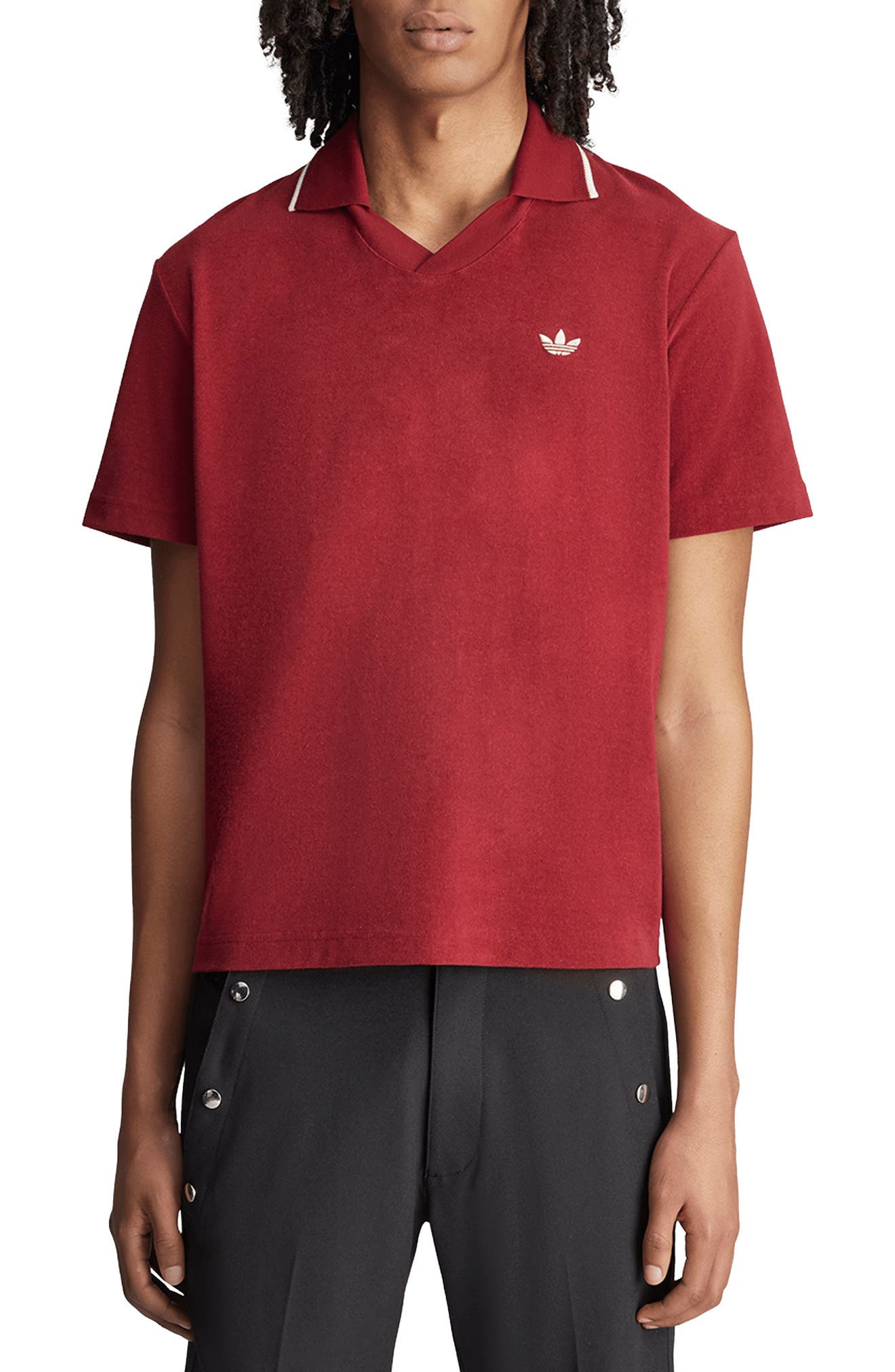 ADIDAS X WALES BONNER Johnny Collar Terry Cloth Polo in Collegiate Burgundy at Nordstrom