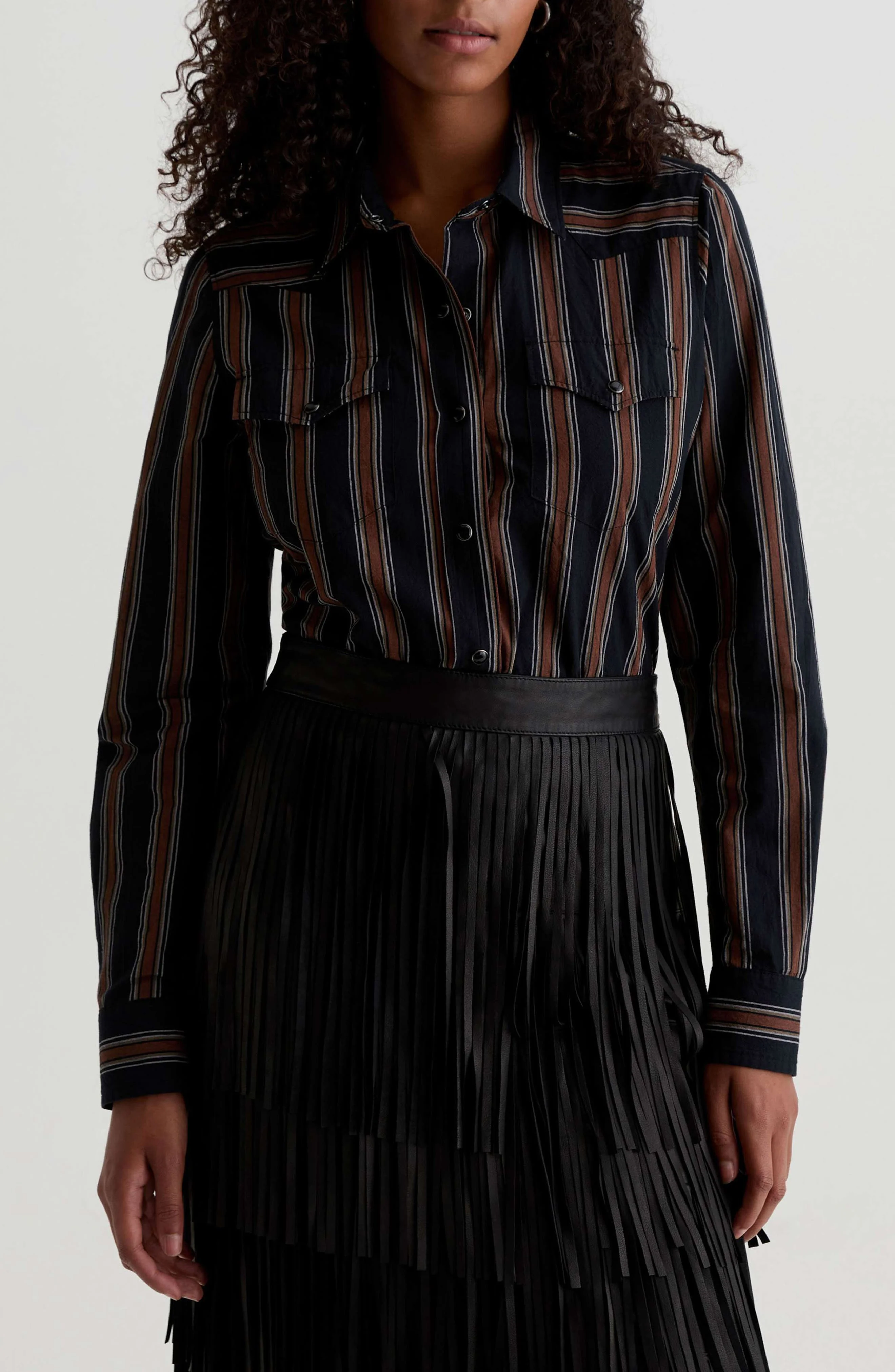 AG Melia Stripe Cotton Western Snap-Up Shirt in Bold Stripe Black Multi at Nordstrom