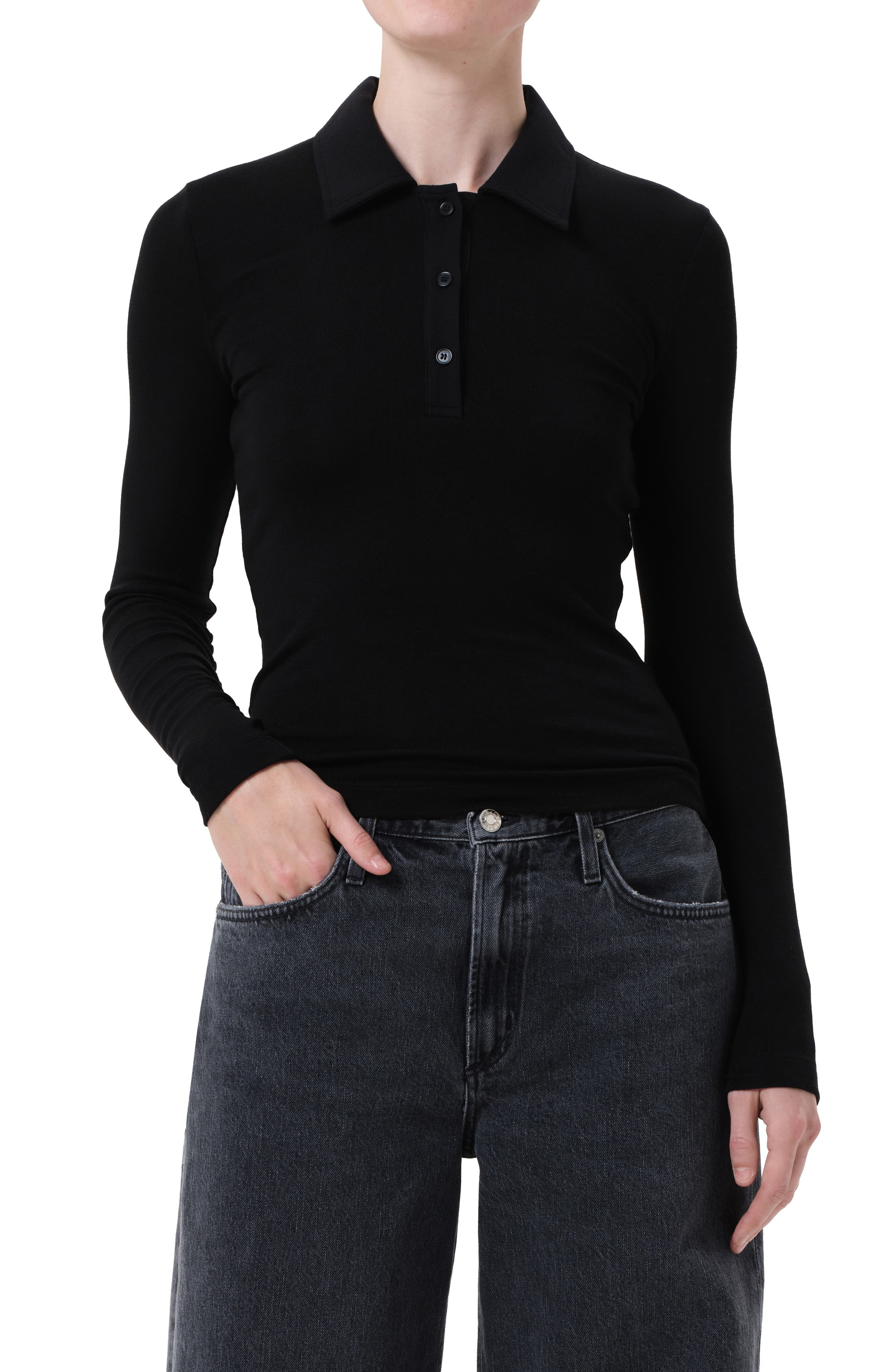 AGOLDE Amos Long Sleeve Polo Shirt in Black at Nordstrom