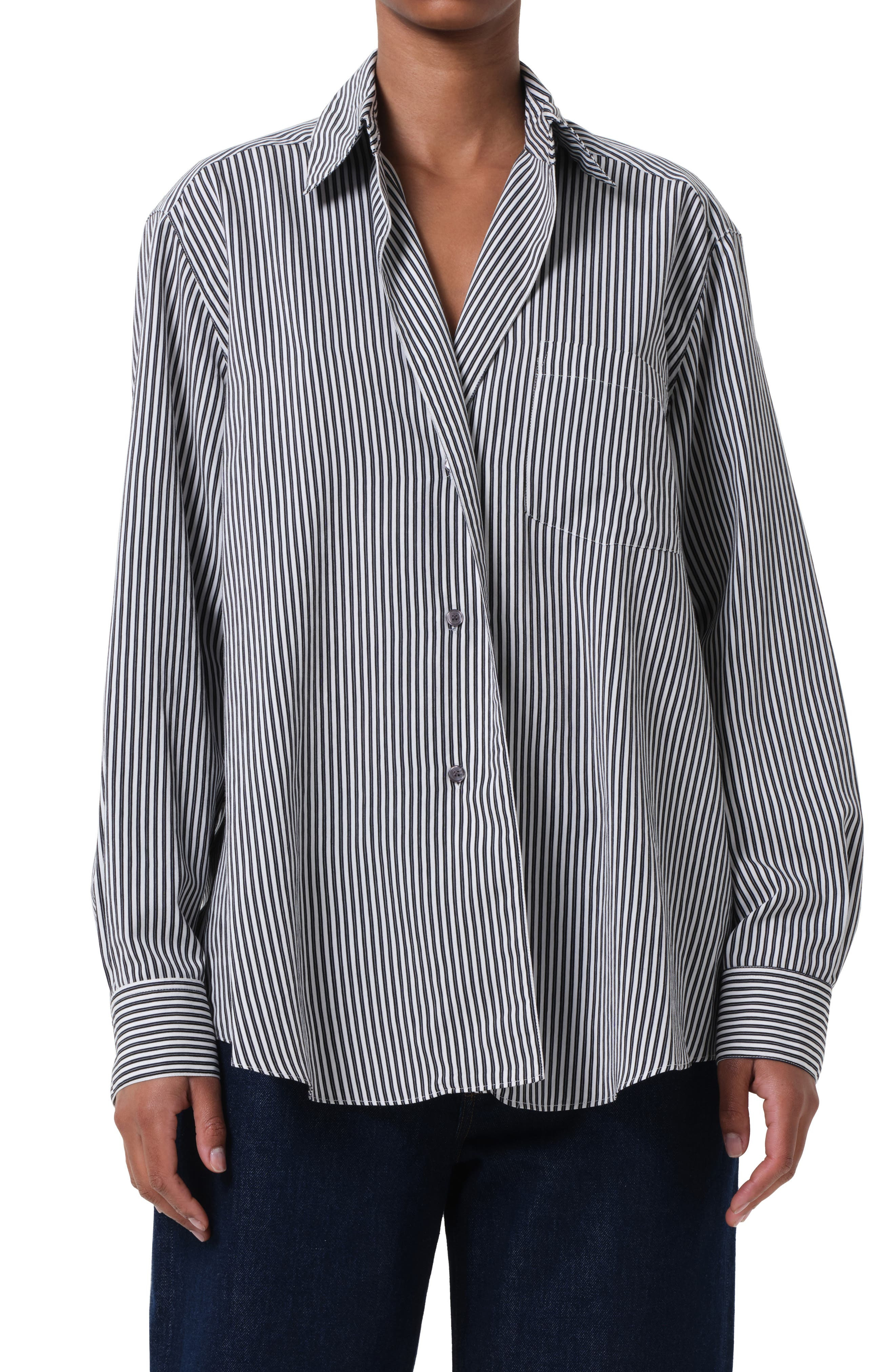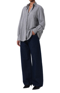 AGOLDE Aris Stripe Button-Up Shirt in Solene Stripe Black And White at Nordstrom
