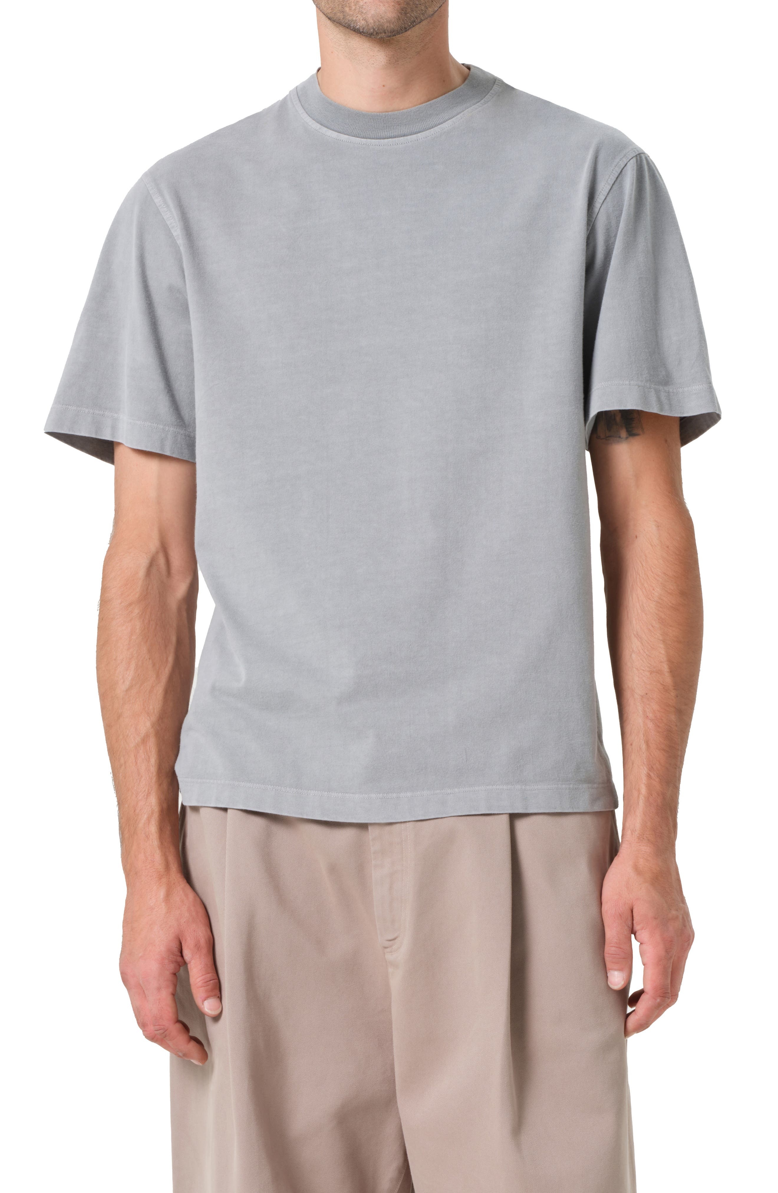 A slightly taller than usual crewneck tops this essential T-shirt crafted in a slim fit from soft, breathable cotton. 29" length; 44 1/2" chest Crewneck Short sleeves 100% cotton Machine wash, tumble dry Made in the USA