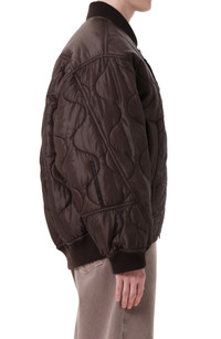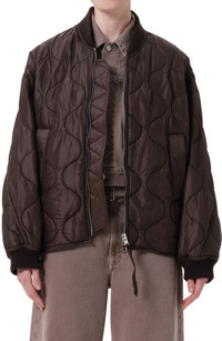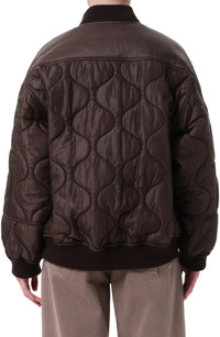 Wavy onion quilting ripples down this slightly oversized bomber jacket featuring a classic blade collar to complete the look. Two-way front-zip closure Blade collar Dropped shoulders Ribbed cuffs and hen Front welt pockets 100% polyester Dry clean Imported