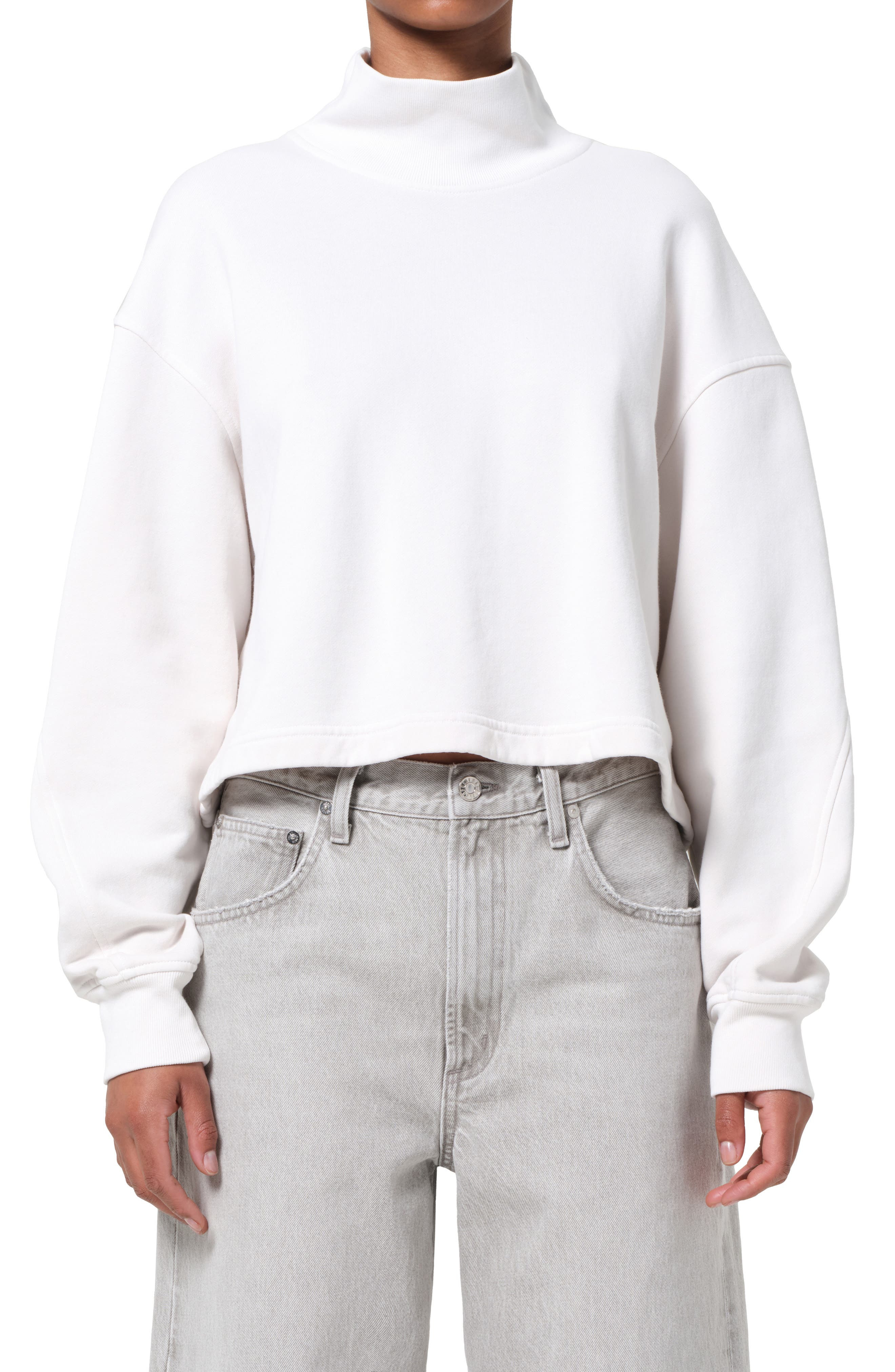 AGOLDE Isra Mock Neck Fleece Cotton Pullover in Wired at Nordstrom