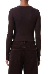 A stretchy rib knit perfects the figure-hugging fit of this cropped T-shirt framed by long sleeves. 19" length Crewneck Long sleeves 50% polyester, 32% cotton, 18% rayon Machine wash, tumble dry Made in the USA