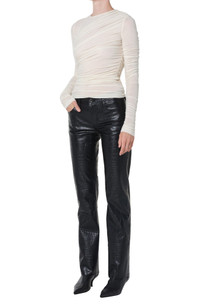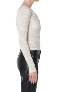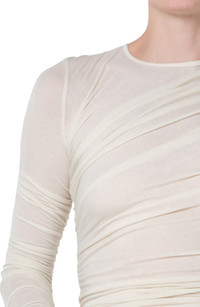Rippled ruching and a kiss of stretch enhance the close fit of this day-to-night top. 14" length Jewel neck Long sleeves 94% lyocell, 6% spandex Machine wash, tumble dry Made in the USA