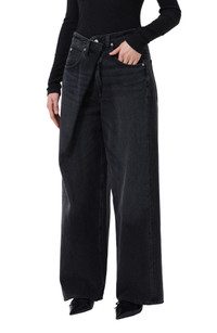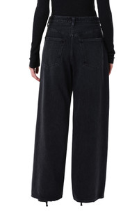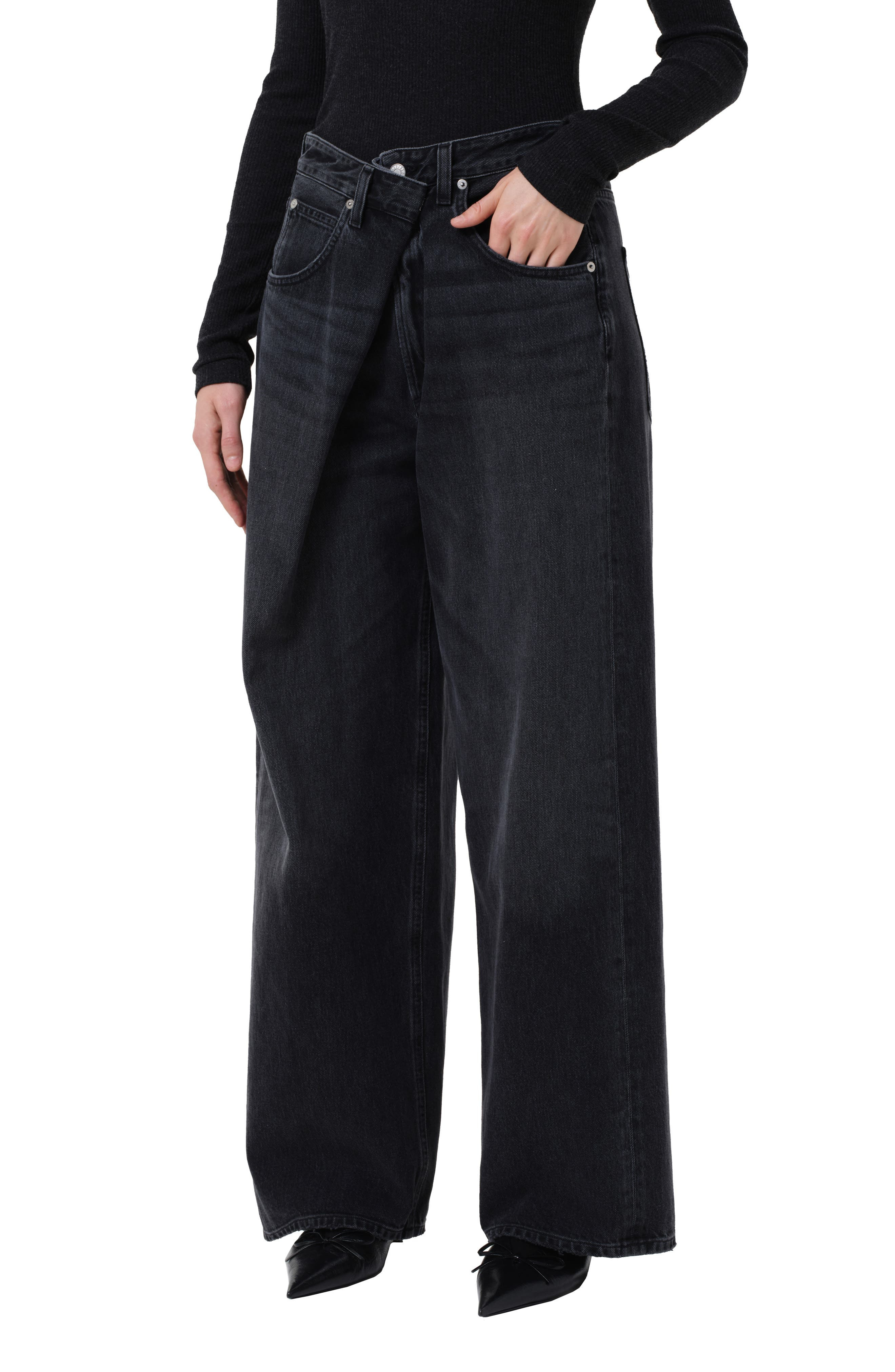 AGOLDE Vana Fold Waistband Wide Leg Jeans in Arcane Dark Black at Nordstrom