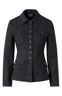 A tailored take on the denim shirt-jacket features the requisite quartet of pockets and the signature Akris touch of unfussy split cuffs. Front button closure Spread collar Split cuffs Chest button-flap patch pockets; front button-flap patch pockets Back vent 95% cotton, 5% polyurethane Dry clean Made in Romania Designer Clothing