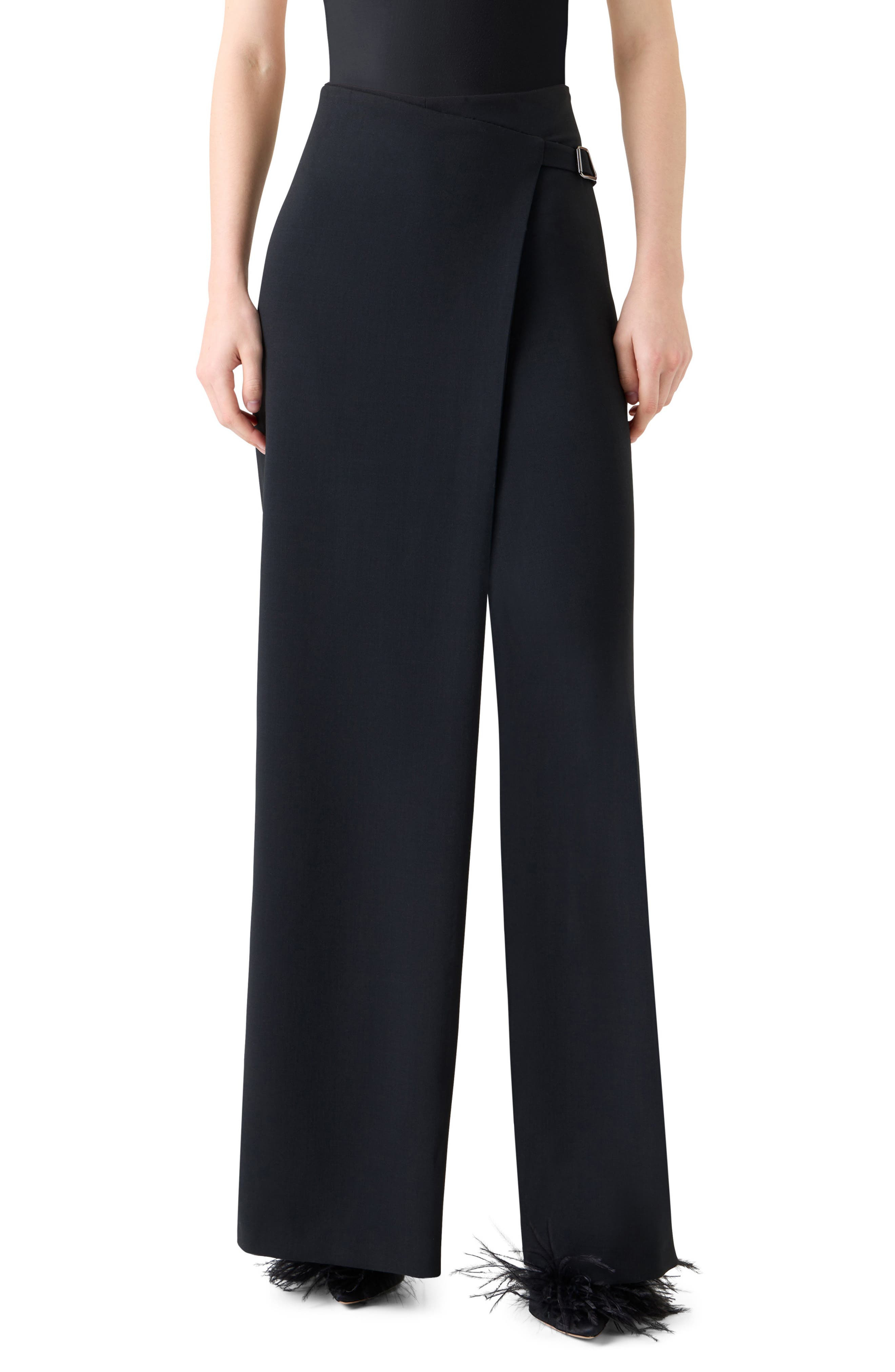 Akris Foss Apron Front Wool Blend Pants in Black at Nordstrom