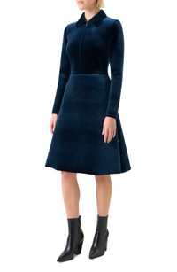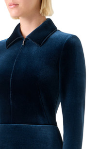 Long-Sleeve Neoprene Velvet A-Line Shirtdress