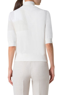 A trapeze rayonnant jacquard knit brings subtle pattern and color variations to this cotton-blend sweater designed with a stand collar and zip closure. Front zip closure Stand collar Elbow-length sleeves 95% cotton, 5% polyamide Dry clean Imported Designer Clothing