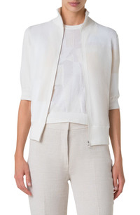 Akris Trapeze Rayonnant Jacquard Full Zip Cardigan in Ecru at Nordstrom