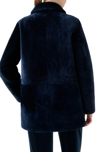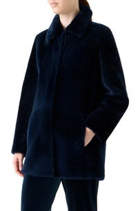 Elevate your outerwear wardrobe with this luxurious jacket made from genuine merino shearling that's been shaved to create a plush Astrakhan effect. Hidden-button placket Spread collar Front welt pockets Lined Genuine shearling (Romania) Professional fur clean Imported Designer Clothing