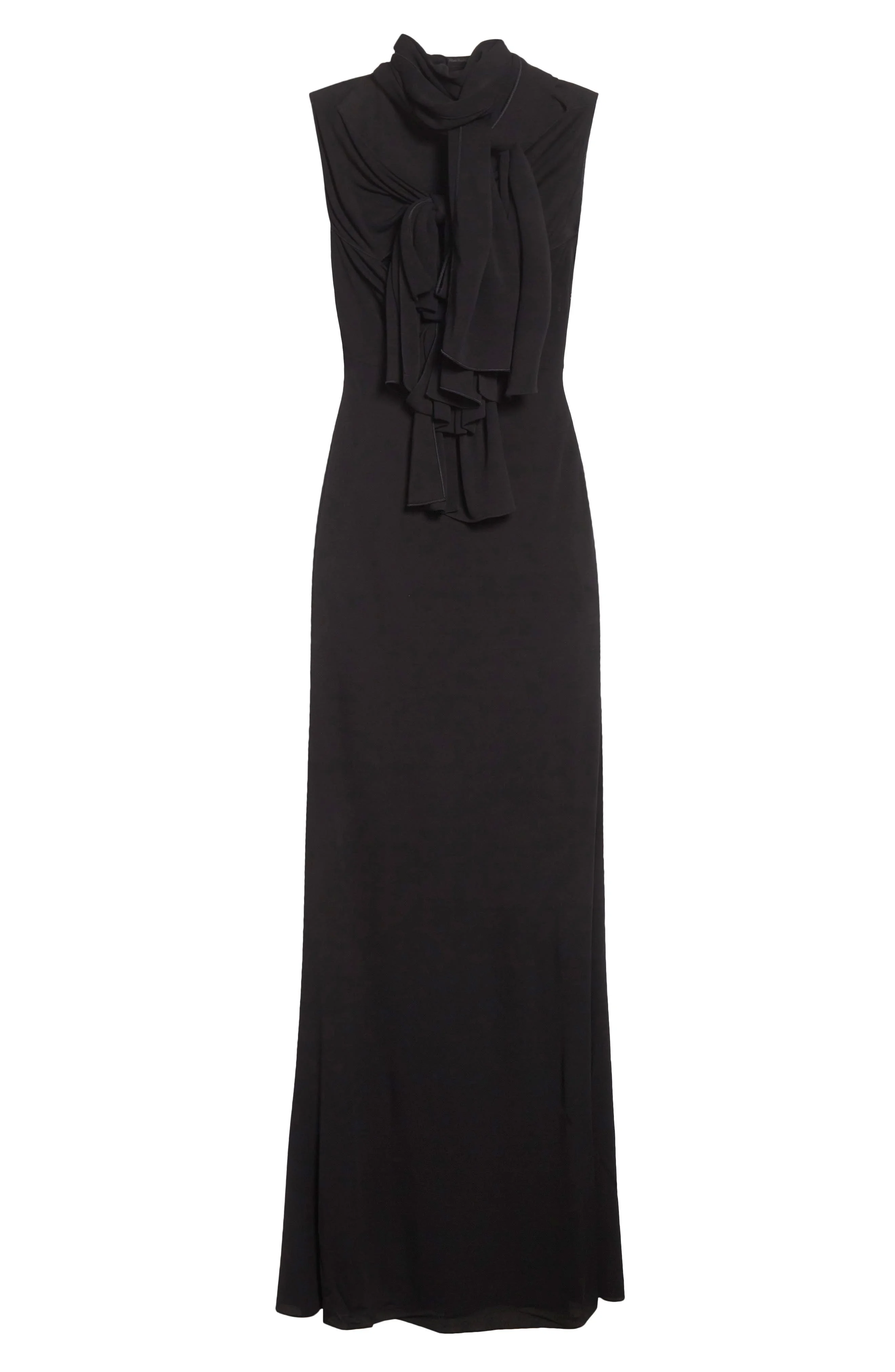 For fall '25, Pieter Mulier explores the softer side of Alaia, trading architectural edge for artful draping in this Italian-jersey dress that honors the King of Cling's legacy as it skims your shape. Cascading bows introduce graceful movement and soft volume. Hidden side-zip closure Turtleneck Sleeveless 100% viscose Dry clean Made in Italy Designer Clothing