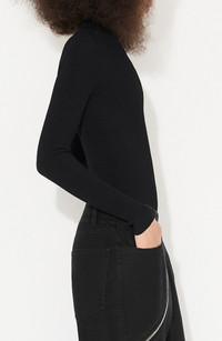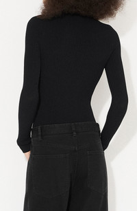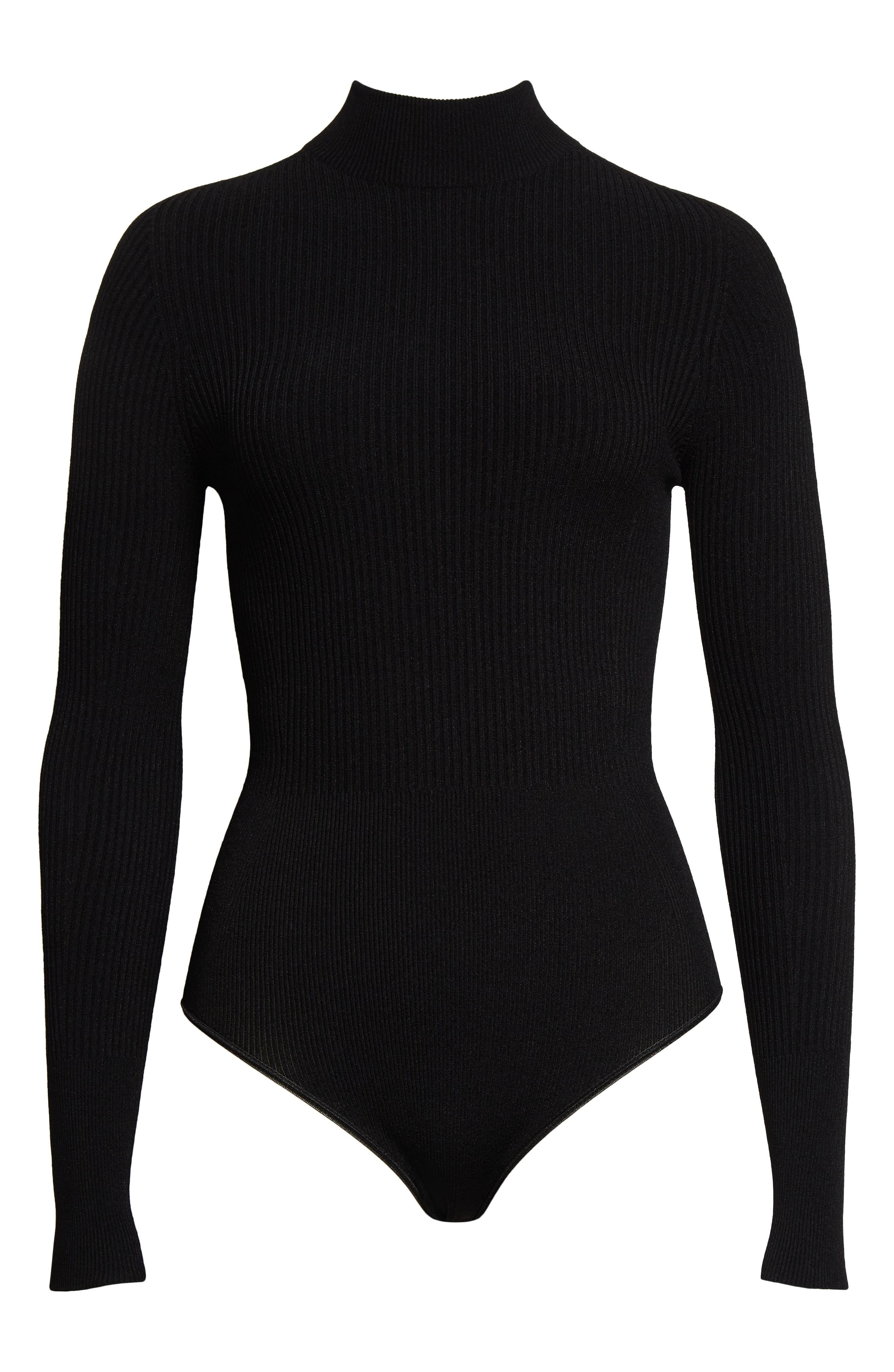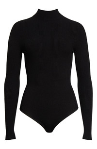 This bodysuit brings you the coziness of a rib-stitched sweater but in a sleek, body-sculpting fit with a tucked-in look without the bulk. Snap closure Mock neck Long sleeves 83% viscose, 17% polyester Dry clean Made in Italy Designer Clothing