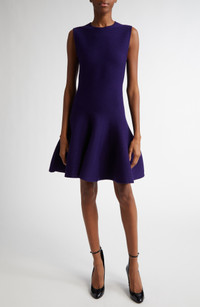 Alaïa Rib Wool Blend Skater Minidress in Violet Fonce at Nordstrom