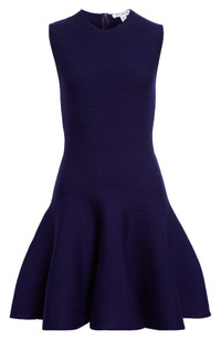 This skater-style mini sweater-dress is knit from wool-blend yarn in a dimensional ribbed stitch that's fitted through the bodice before flaring dramatically at the sculptural skirt. 29" center front length (size 6) Hidden back-zip closure Jewel neck Sleeveless Unlined 95% wool, 5% polyamide Dry clean Made in Italy Designer Clothing