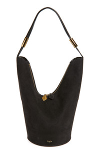 The Parisian label blurs the line between art and fashion with this sculptural suede bucket bag featuring a tall silhouette with a deeply notched topline. The sliding cylinders allow you to adjust the handle for ultimate styling versatility. Two-way top-zip closure Adjustable shoulder strap Structured silhouette with flat base for stability Leather Made in Italy Designer Handbags
