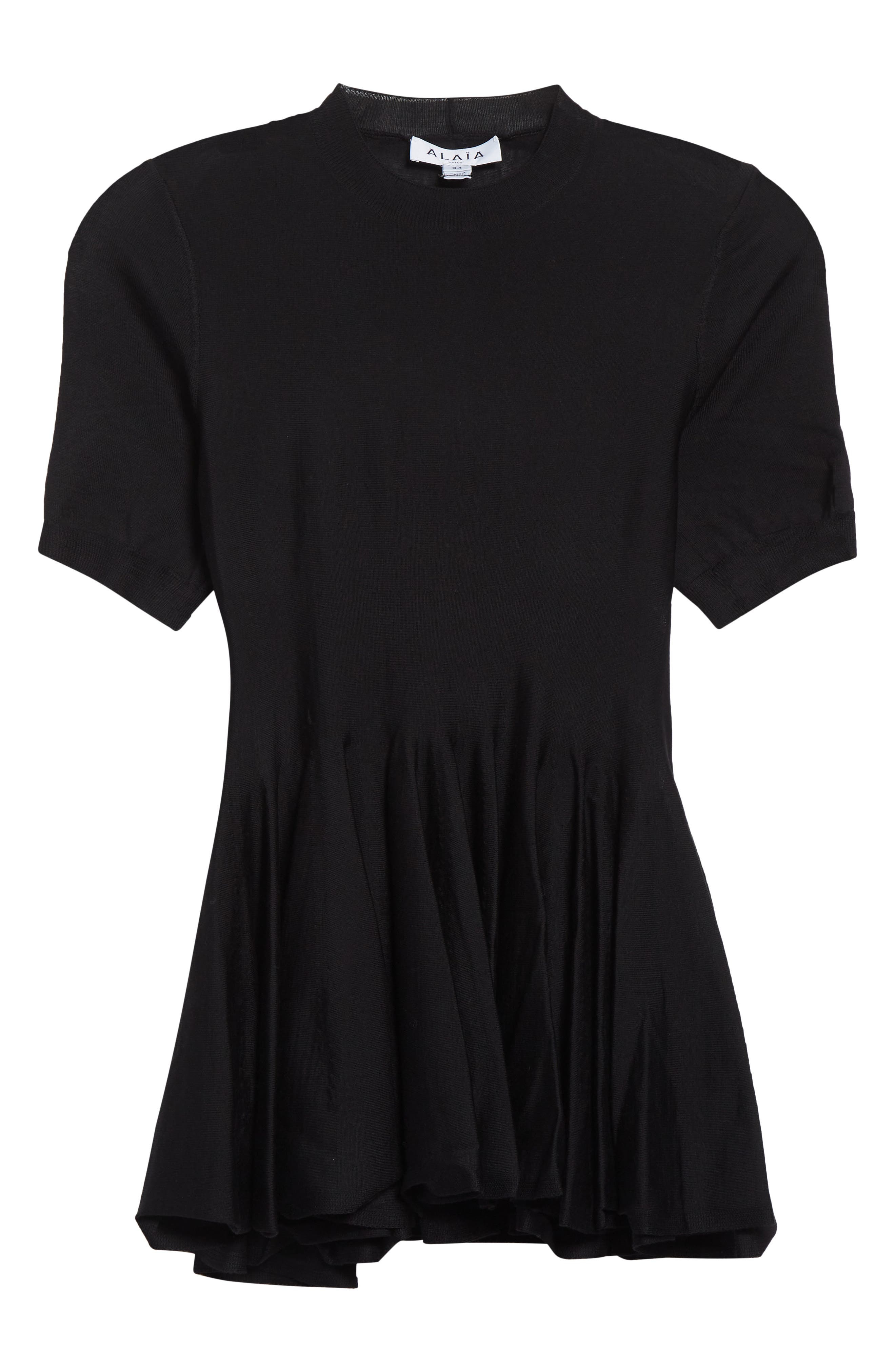 Alaïa Short Sleeve Wool Peplum Sweater in Noir Alaia at Nordstrom