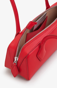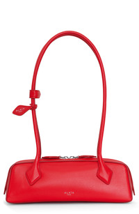 This covetable shoulder bag from Alaia features an elongated East/West silhouette and gets its fitting name after the French word for the Dachshund dog breed. The standout hue offers the perfect pop of red for your looks, and the rolled straps are the perfect length for slinging over your shoulder. Two-way top-zip closure Shoulder straps Interior wall pocket with removable mirror Lambskin-suede lining Leather Made in Italy Designer Handbags