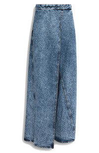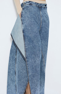 These wide-leg jeans crafted from stonewashed denim embrace the season's 'twisted' aesthetic with curving seams and a wrap-style panel that unbuttons to reveal the leg while draping to the side. In his Winter/Spring '25 collection, creative director Pieter Mulier honors Azzedine Alaia’s heritage codes while reimagining American classics with an emphasis on fluidity and movement. Side-seam pockets; back patch pockets 99% cotton, 1% polyurethane Dry clean Made in Italy Designer Clothing