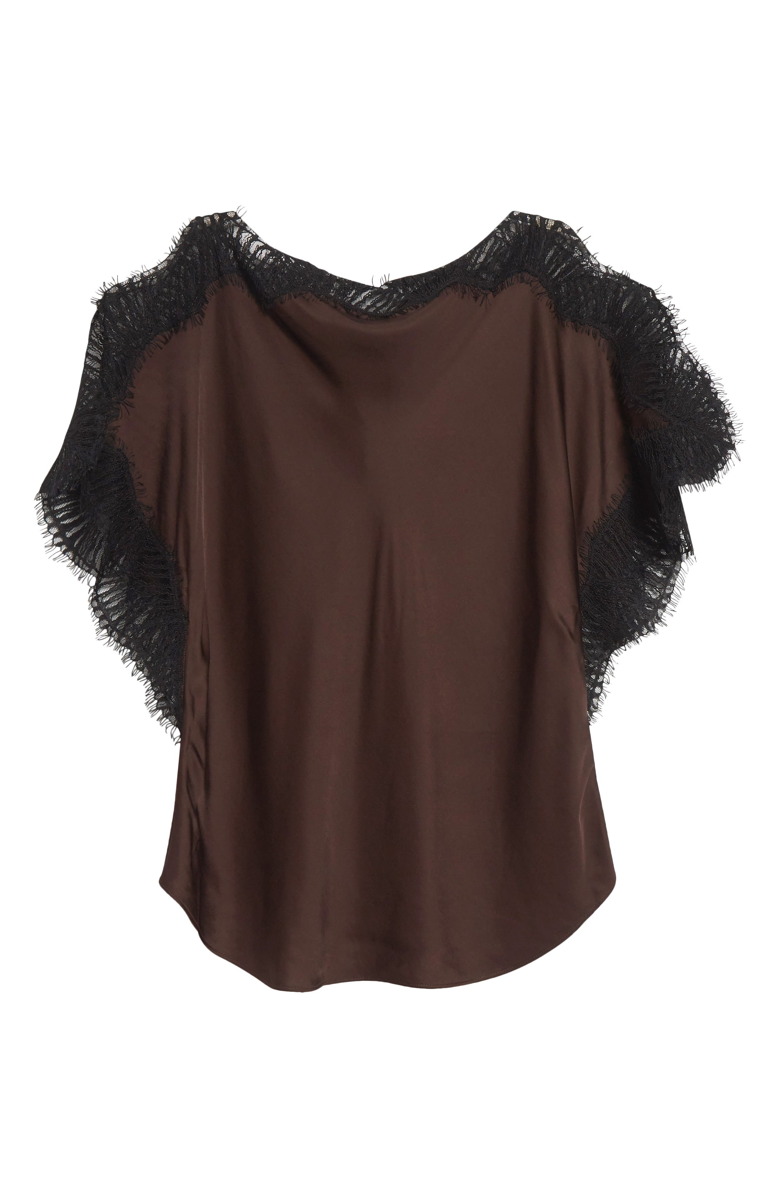 A.L.C. Luna Lace Trim Satin Top in Cocoa/Black at Nordstrom