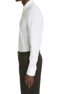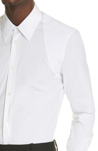 A buckled harness strap at one shoulder puts a subversive twist on a classic button-up shirt tailored from crisp stretch poplin. Front button closure Point collar Long sleeves with two-button cuffs 97% cotton, 3% elastane Dry clean Made in Italy Men's Designer Clothing