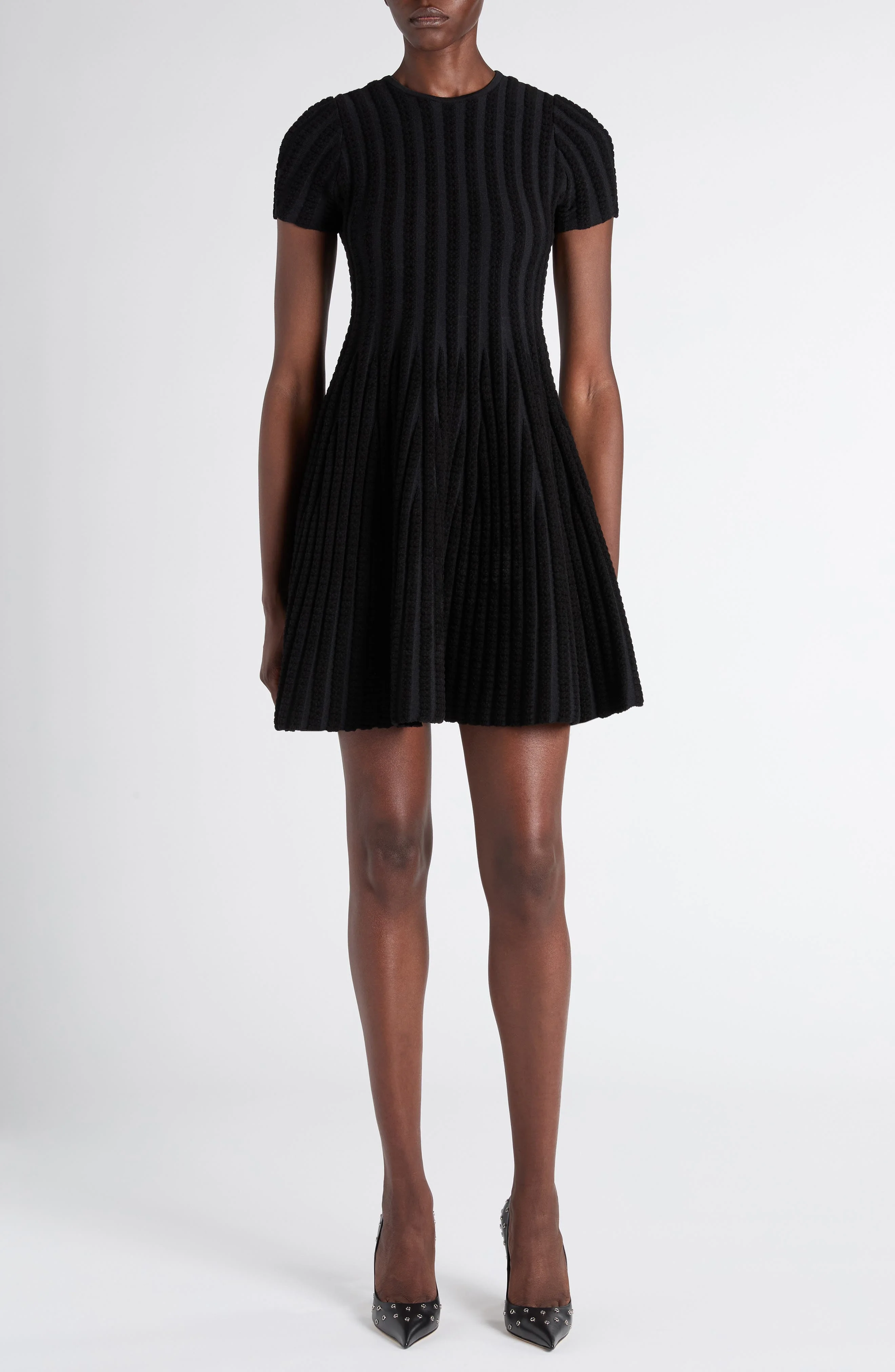 McQueen Chenille Stripe Sweater Dress in Black at Nordstrom