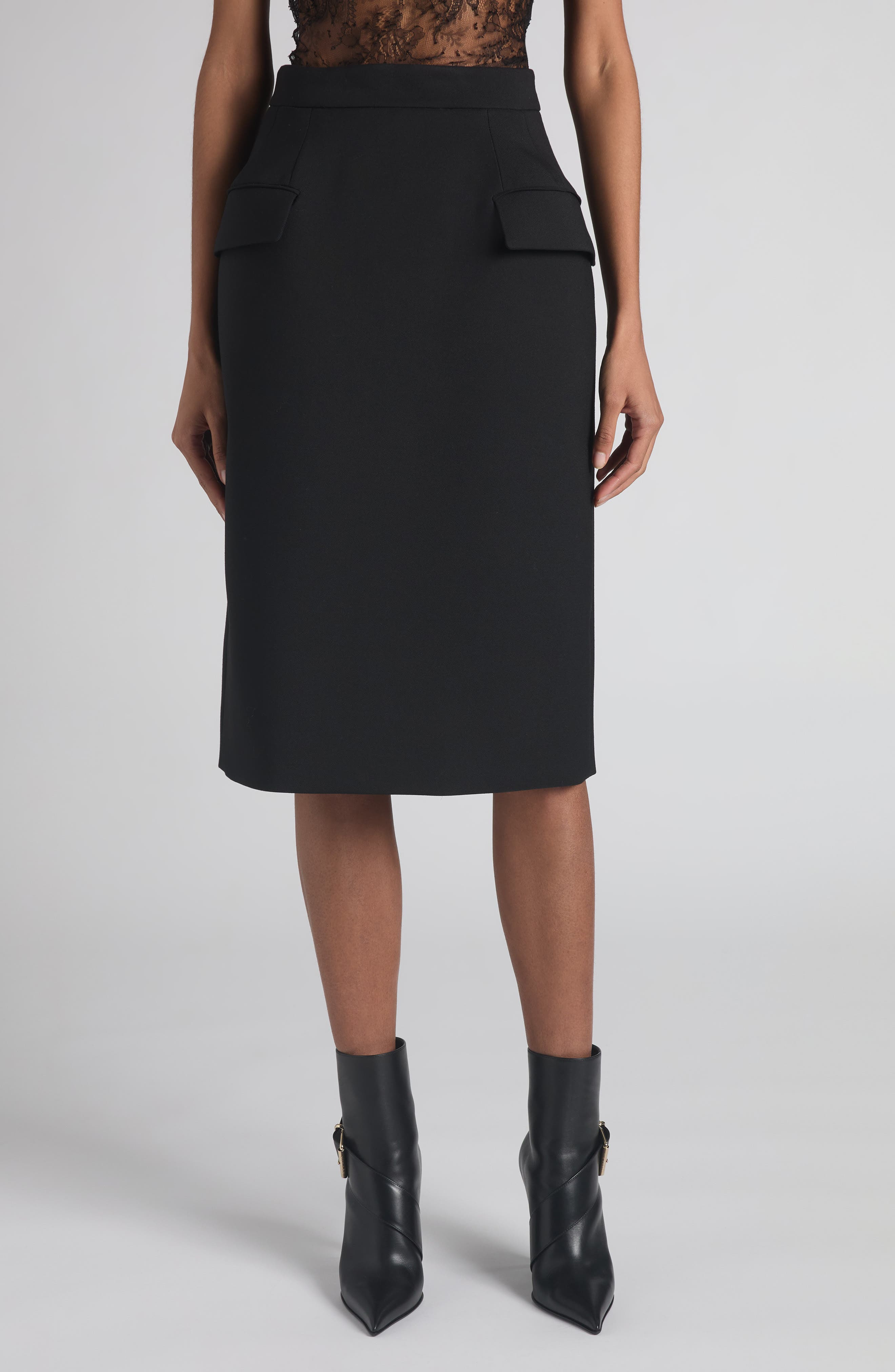 Wool Gabardine Pencil Skirt
