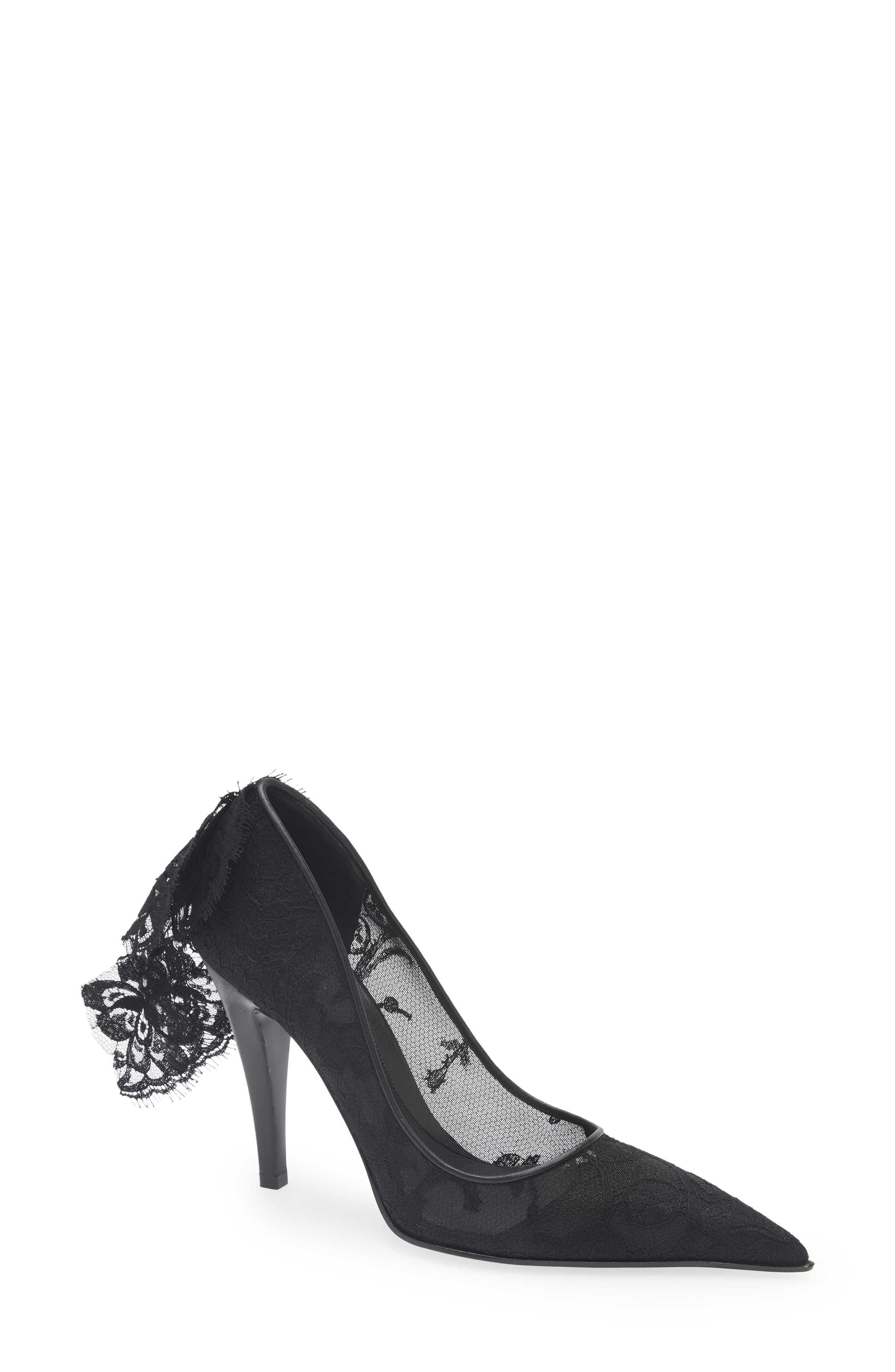 McQueen Drape Lace Pointed Toe Pump in Black at Nordstrom