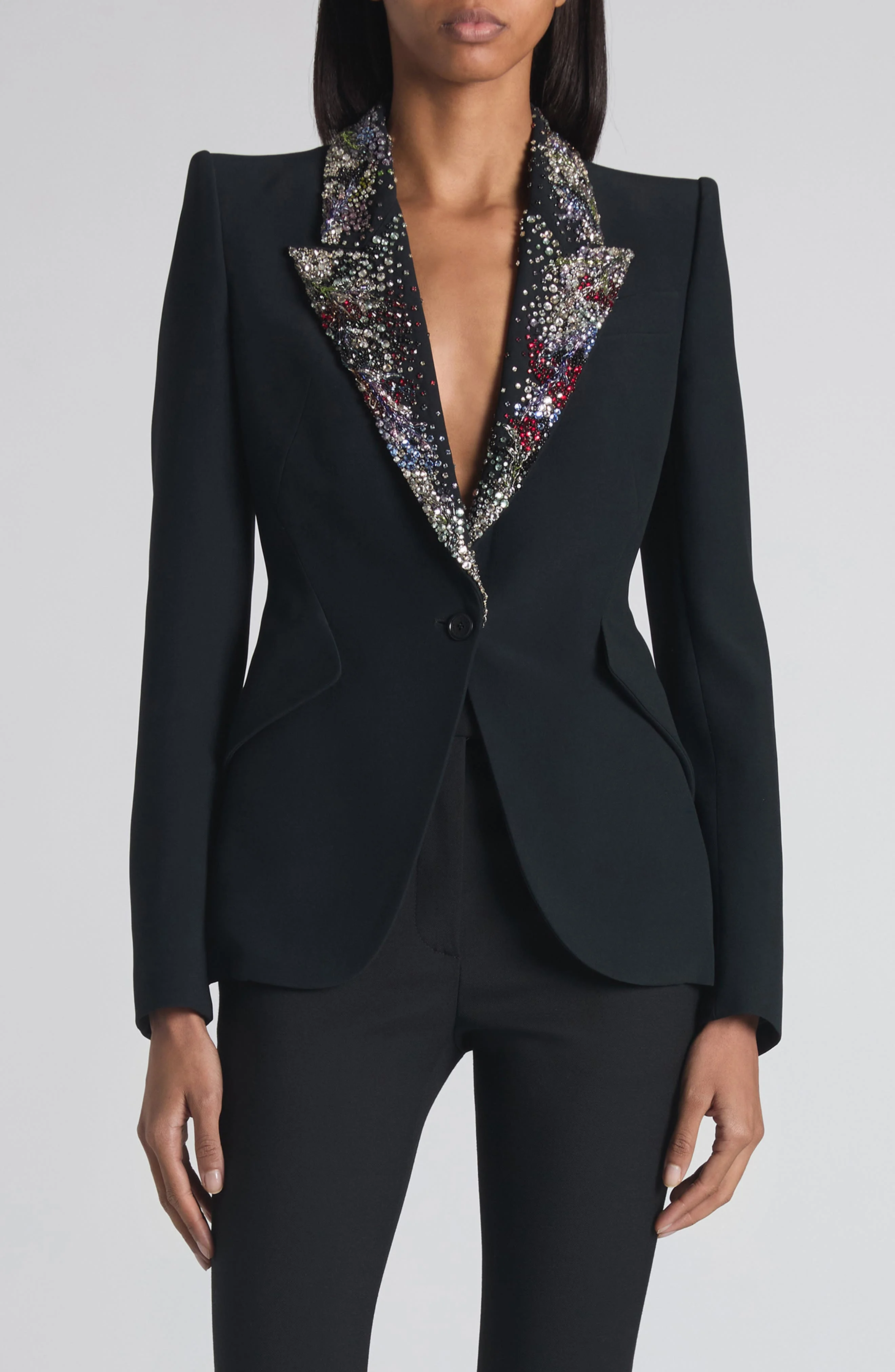 McQueen Embellished Lapels Crepe Blazer in Black at Nordstrom