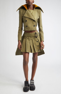 Sean McGirr puts utilitarian military uniforms at ease for the stylish civilian in this pleated miniskirt made from garment-dyed cotton twill. Set the buttons front and center or to the side, as they appeared in the spring '25 runway styling. Front button closure Removable belt 100% cotton Dry clean Made in Italy Designer Clothing
