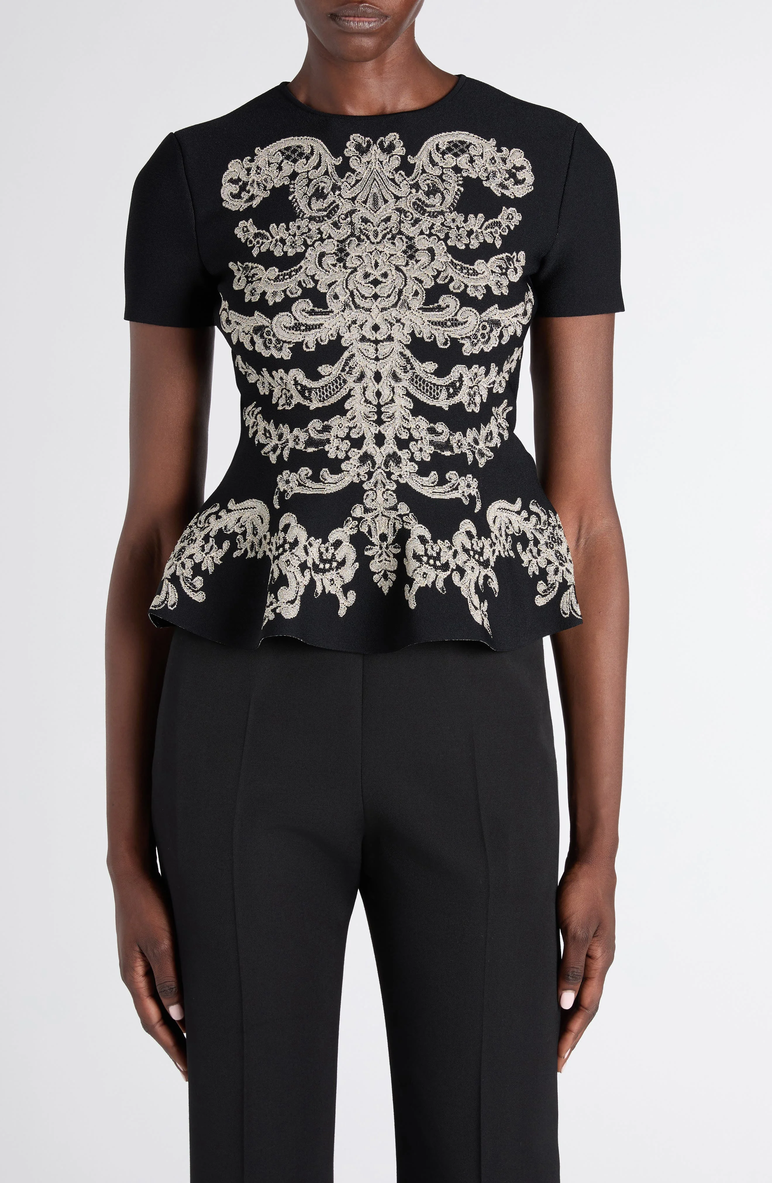 McQueen Ribcage Jacquard Peplum Top in Black at Nordstrom