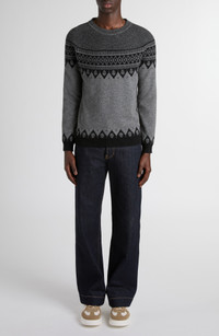 McQueen Skull Fair Isle Wool Crewneck Sweater in Greymel/Black at Nordstrom