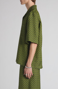 McQueen Skull Jacquard Satin Camp Shirt in Absynthe at Nordstrom