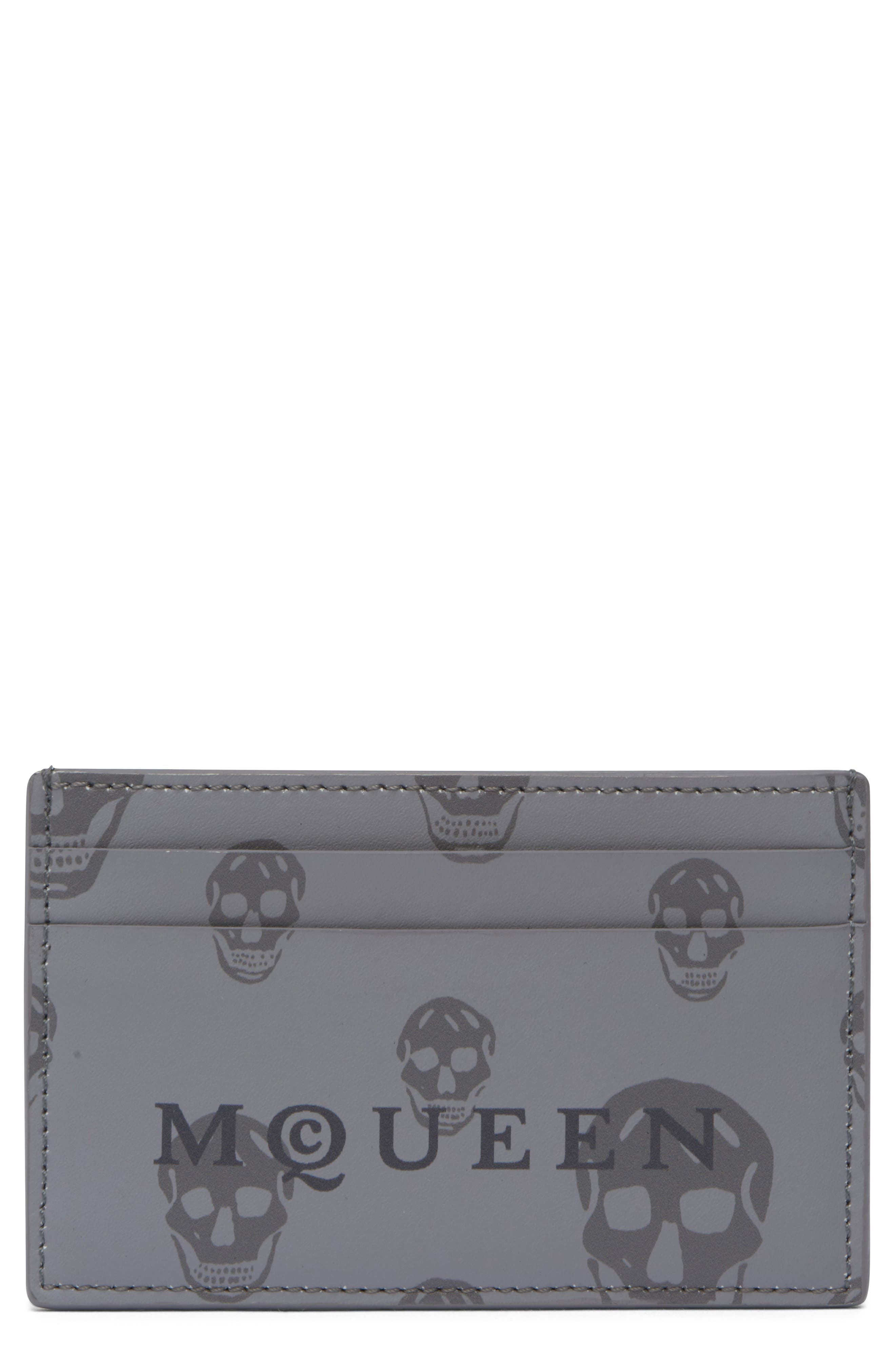 McQueen Skull Leather Card Case in Grey/Dark Grey at Nordstrom