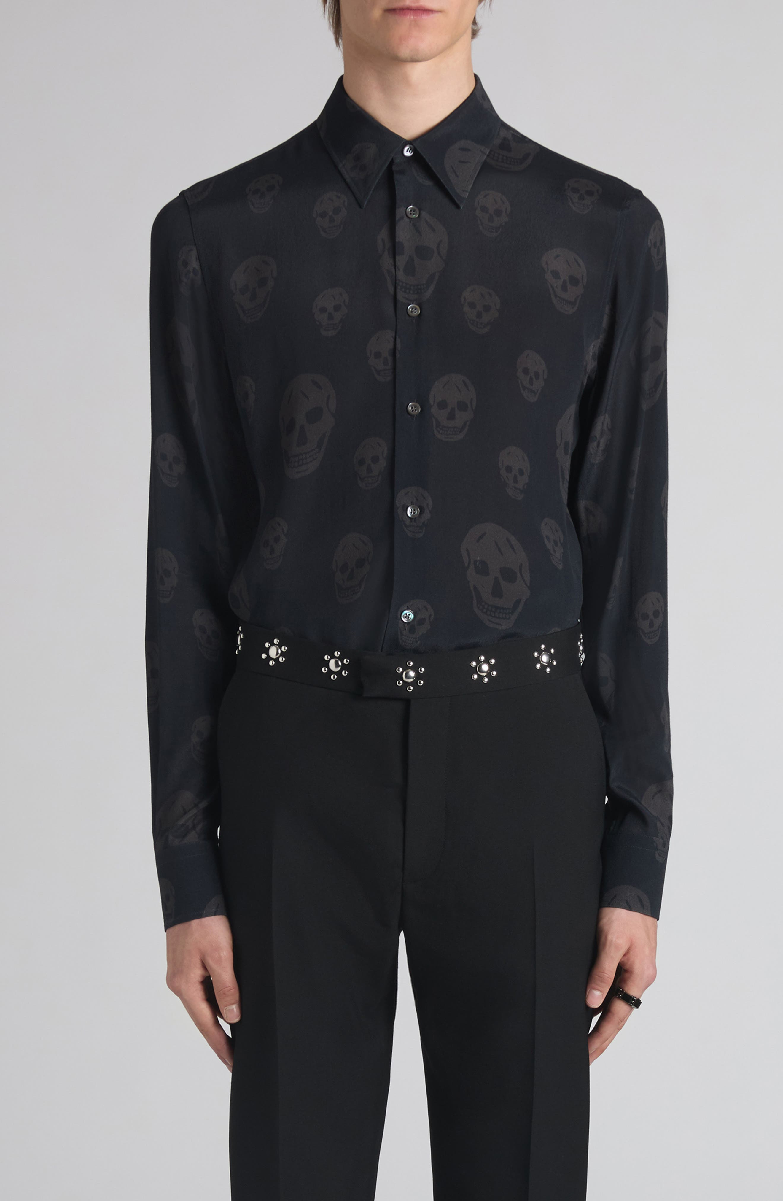McQueen Skull Print Shop Button-Up Shirt in Black