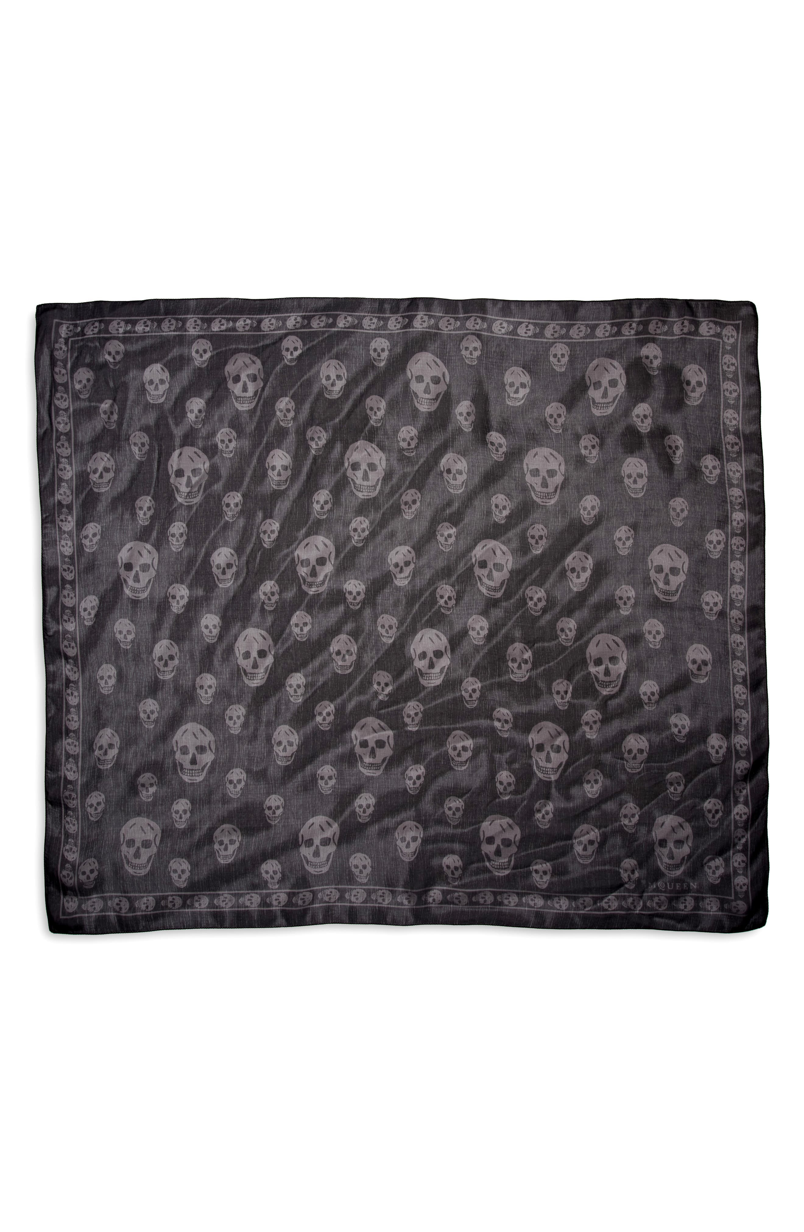 McQueen Skull Print Silk Scarf in Black/Dark Grey at Nordstrom