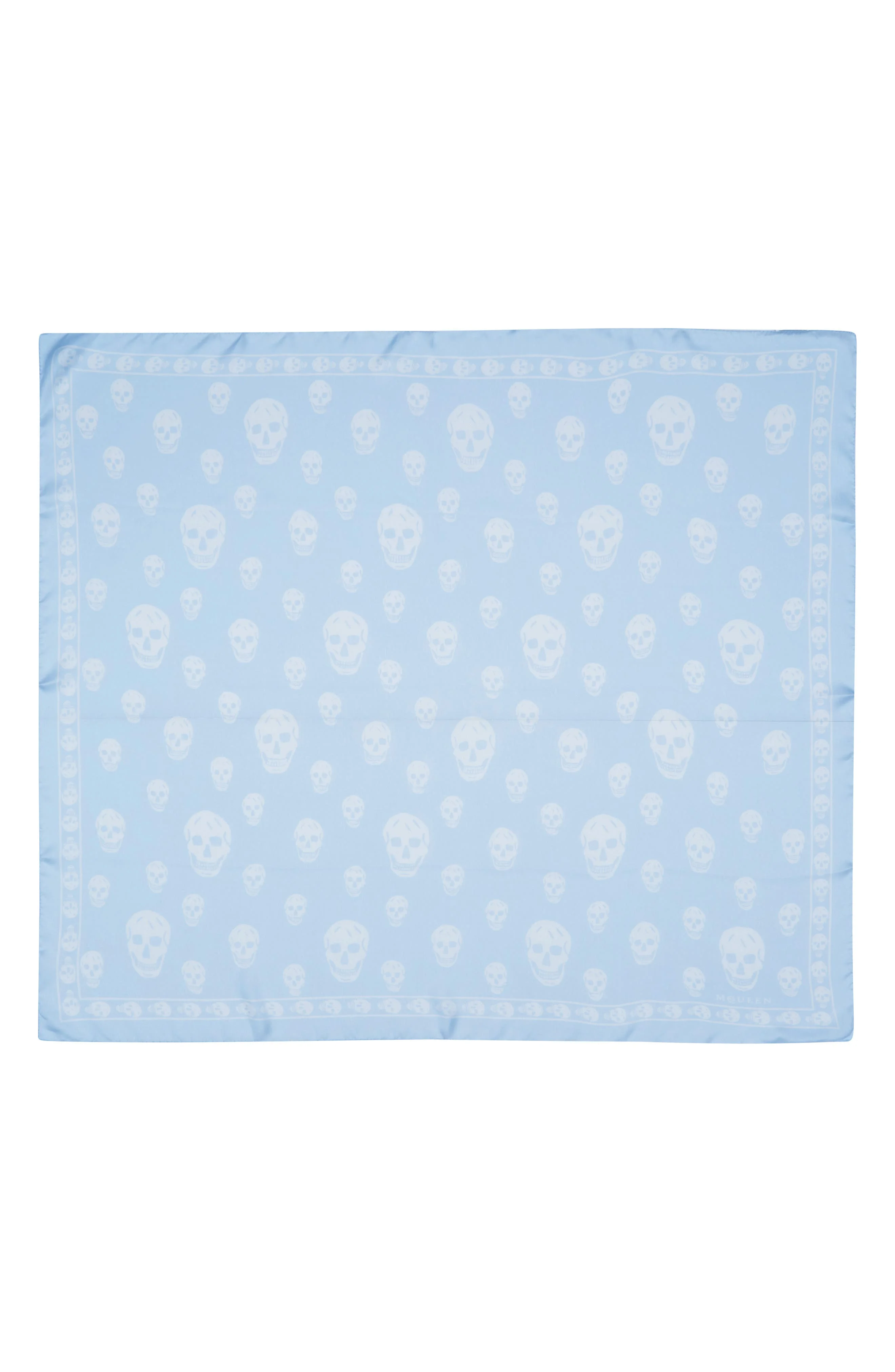 McQueen Skull Print Silk Scarf in Iceblue/White at Nordstrom