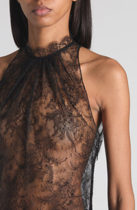 In true McQueen tradition, Sean McGirr marries gothic romance and glamour to alluring effect in this gathered top cut from sheer floral lace with scalloped edges. Back keyhole with button-and-loop closure Crewneck Sleeveless, with cutaway shoulders Sheer 61% polyamide, 39% viscose Dry clean Made in Italy Designer Clothing
