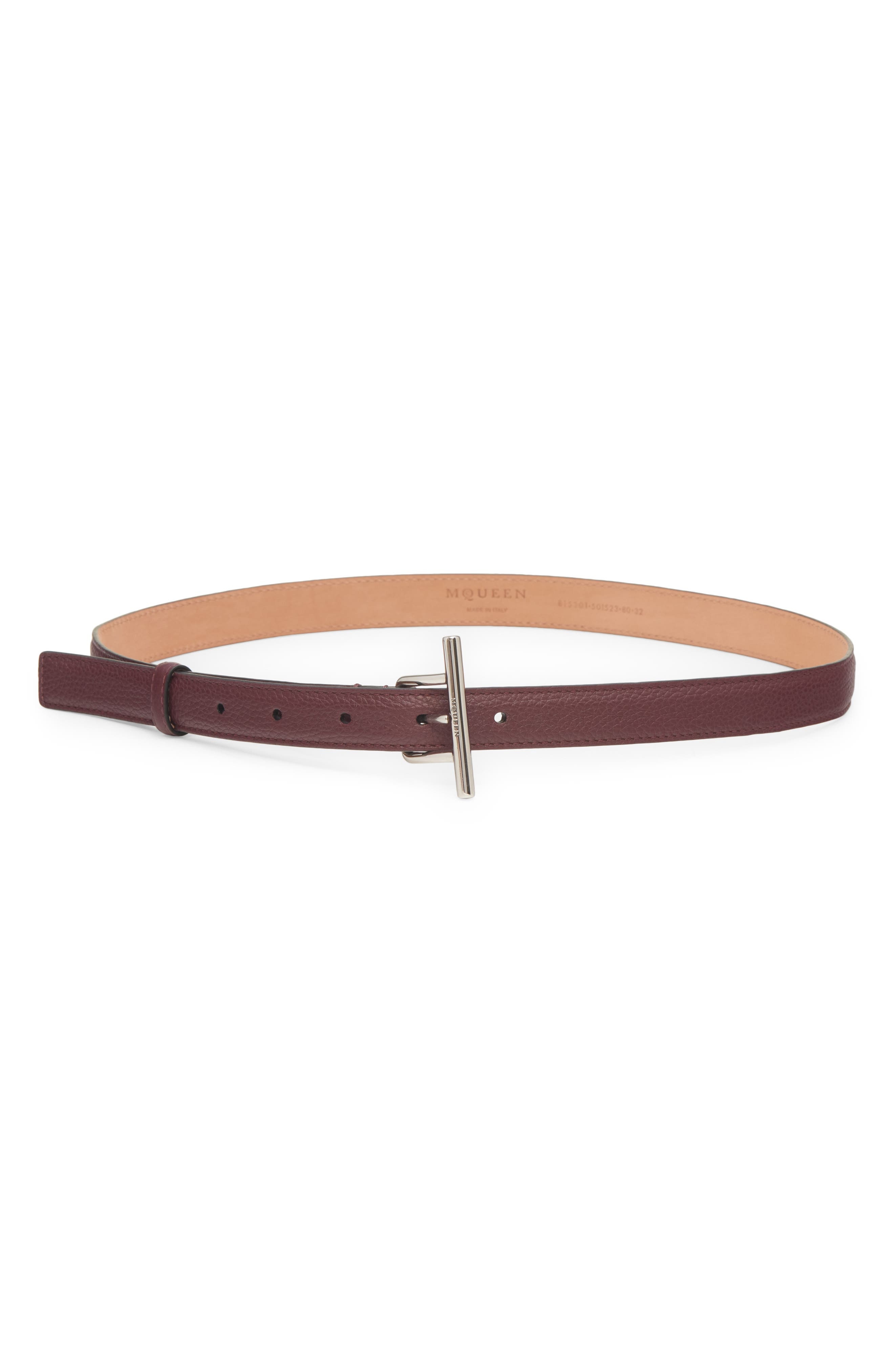 McQueen Sling Leather Belt in Cranberry/Silver at Nordstrom