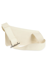 McQueen T-Bar Sling Asymmetric Leather Crossbody Bag in Cream/Silver at Nordstrom