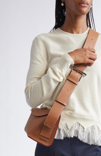 Sculptural bar hardware brings this season's signature look to an asymmetric crossbody bag shaped from richly pebbled calfskin. Magnetic-snap flap closure Adjustable crossbody strap Interior card slot Suede lining Leather Made in Italy Designer Handbags