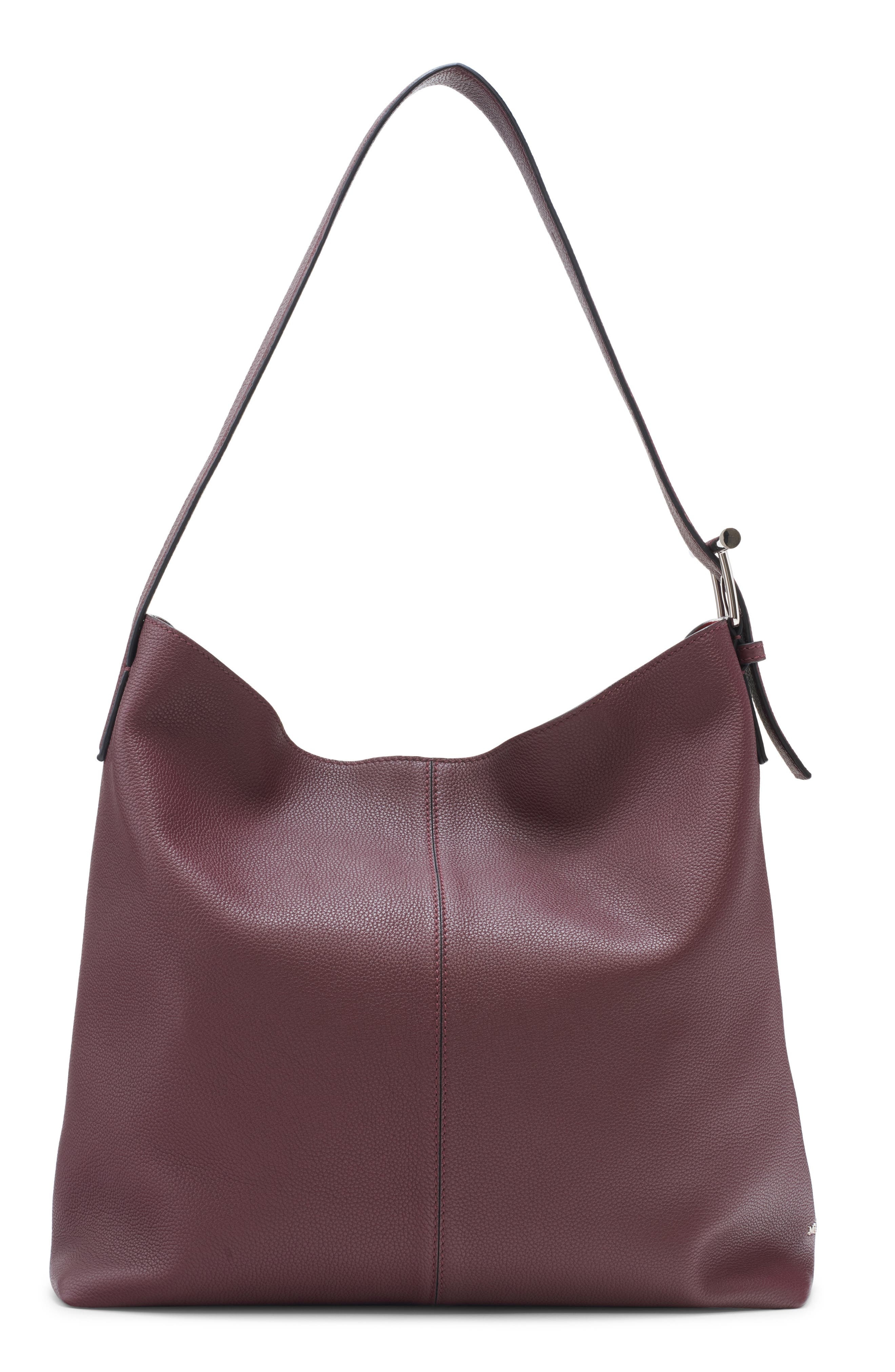 Logo-engraved bar hardware on the buckle-adjustable strap brings this season's signature look to a spacious and slouchy hobo bag in supple, richly-pebbled calfskin. A polished-metal 'McQueen' subtly marks one end. Magnetic closure Adjustable strap Suede lining Leather Made in Italy Designer Handbags
