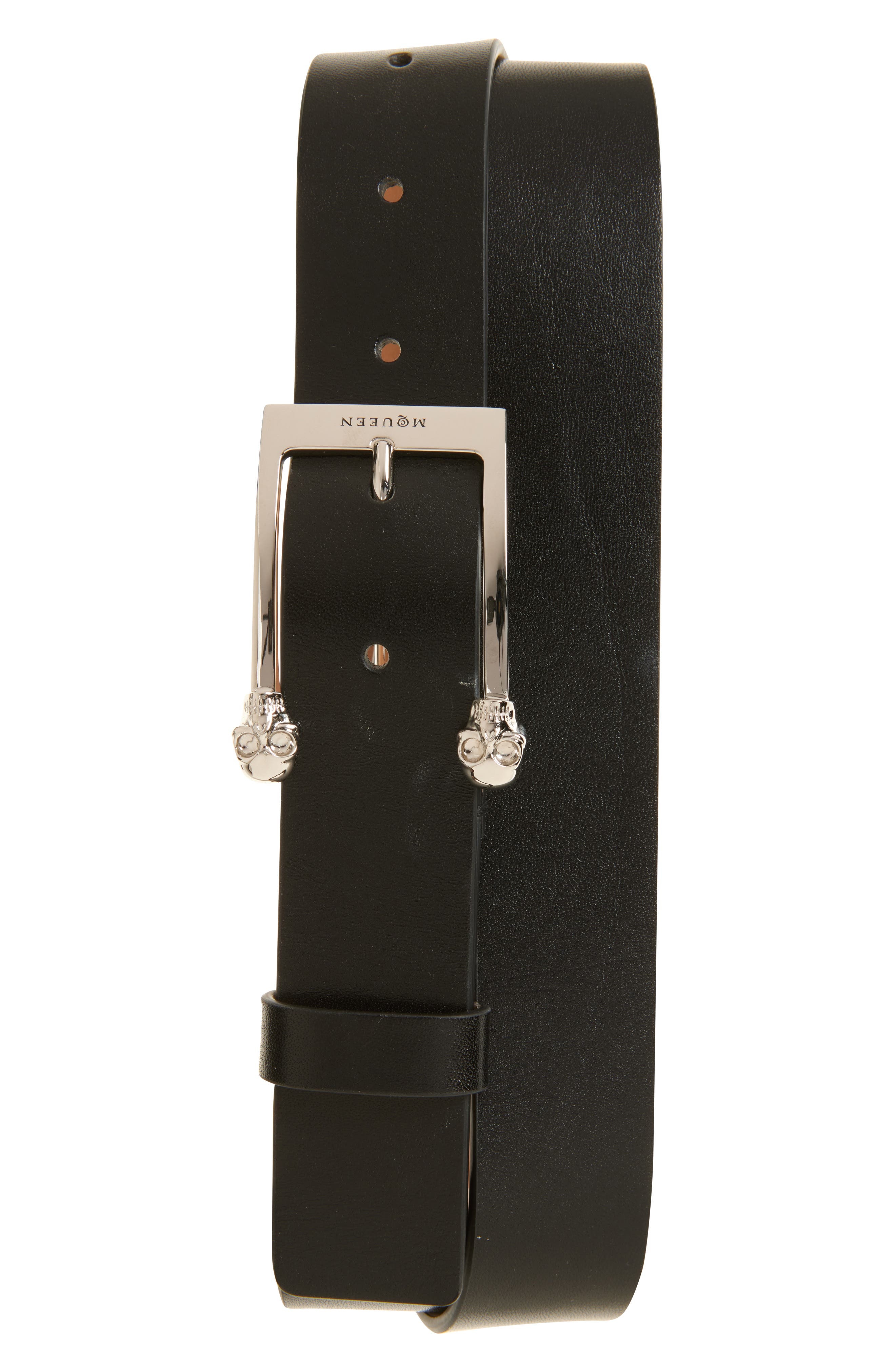 McQueen Twin Skull Leather Belt in Black/Silver at Nordstrom